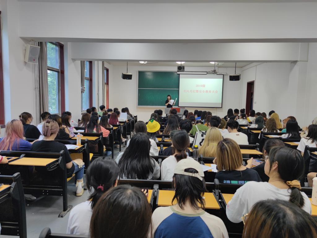 为严肃考风考纪,及时做好假期安全教育,艺术与传媒学院于2021年6月9日中午12:10在J2-207召开了2019级考风考纪暨安全教育大会。本次会议由杨娜娜老师主持,2019级全体学生参加了此次会议。