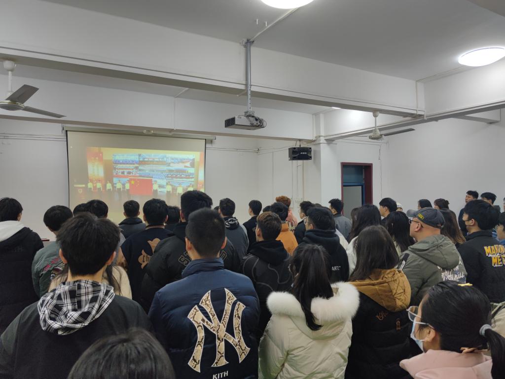 会上,通过集体收看教育部全国青少年普法网直播,大家全体起立并观看升旗仪式,随后由教育部领导领读宪法部分条款,全体学生跟读。同学们聆听北京主会场领唱《宪法伴我们成长》歌曲,并学习了第六届全国学生“学宪法 讲宪法”活动全国总决赛部分优秀学生的展演。