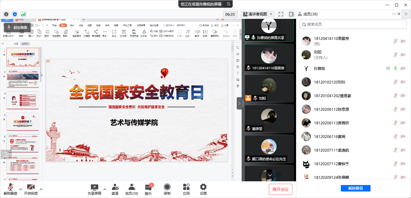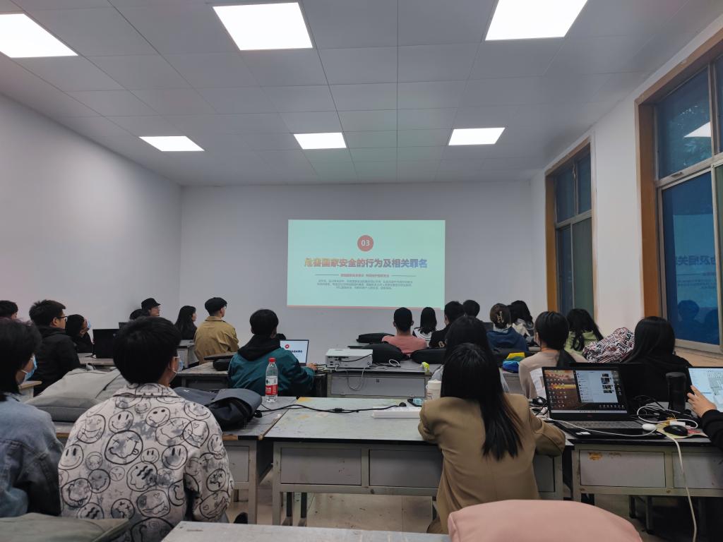活动中各年级分别采取线上线下的形式对《中华人民共和国国家安全法》相关内容进行学习,内容包括国家安全基本内容、公民维护国家安全的义务、如何参与维护国家安全、谁来保卫国家安全等方面。同时通过动漫视频观看的形式,鼓励学生参与学习与讨论,使国家安全知识深入人心。学院倡议全院学生提高政治站位、增强依法防控意识、加强法治宣传,在学习和生活中,时刻紧绷安全意识这根弦,进一步维护国家安全和政治稳定,筑牢国家安全人民防线,为社会的和谐发展作出应有的贡献。