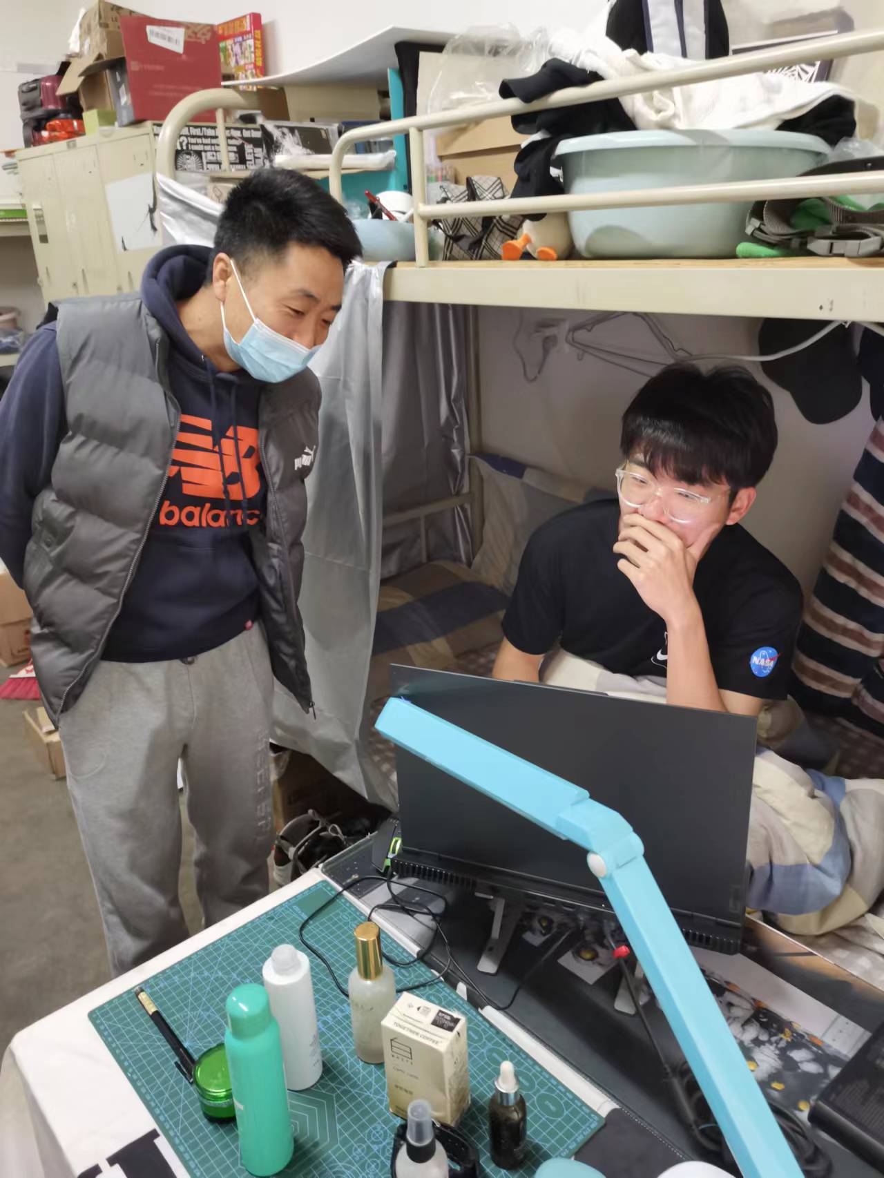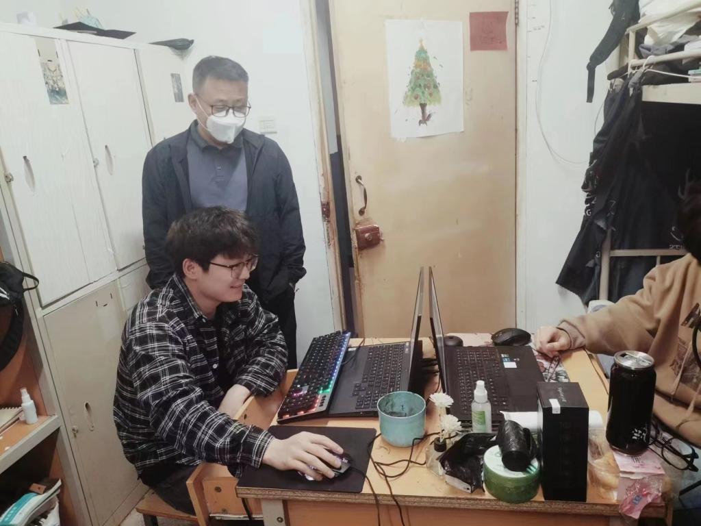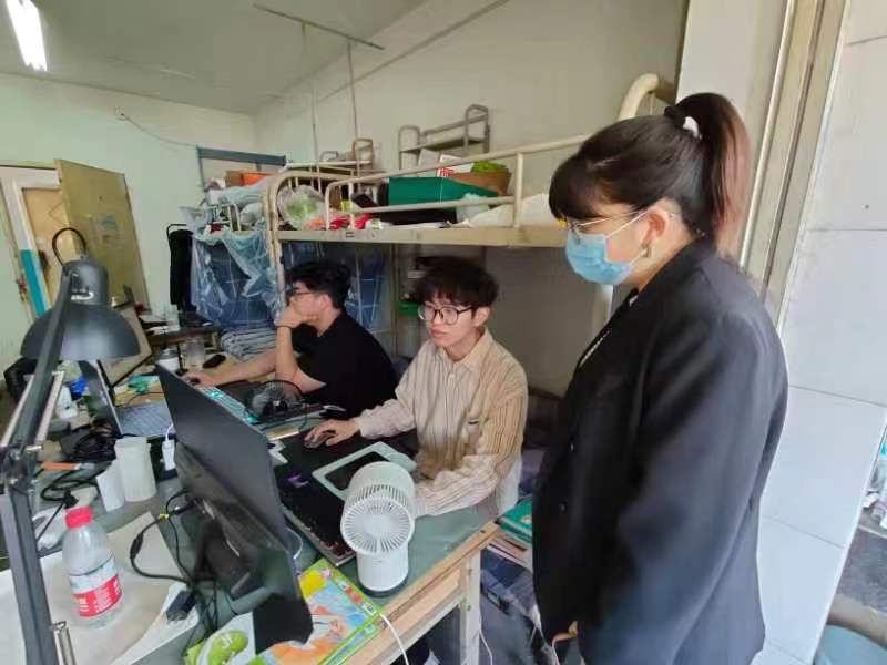 张晓宾和各年级辅导员深入学生宿舍,详细了解了疫情防控期间学生线上学习、宿舍生活状况,现场解答了学生们的问题。同时向同学们介绍了学校封闭管理的相关情况,叮嘱大家按时晨午检打卡,暂停外卖及网购,每天保持寝室清洁卫生,多通风、勤倒垃圾,做好相关消杀工作。对学生宿舍存在的安全隐患进行了逐一排查,并现场督促进行整改。