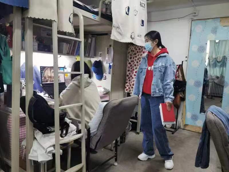 根据学校疫情防控工作要求,在学院的统一组织安排下,艺术与传媒学院党委副书记张晓宾和各年级辅导员于4月18日走访学生公寓。