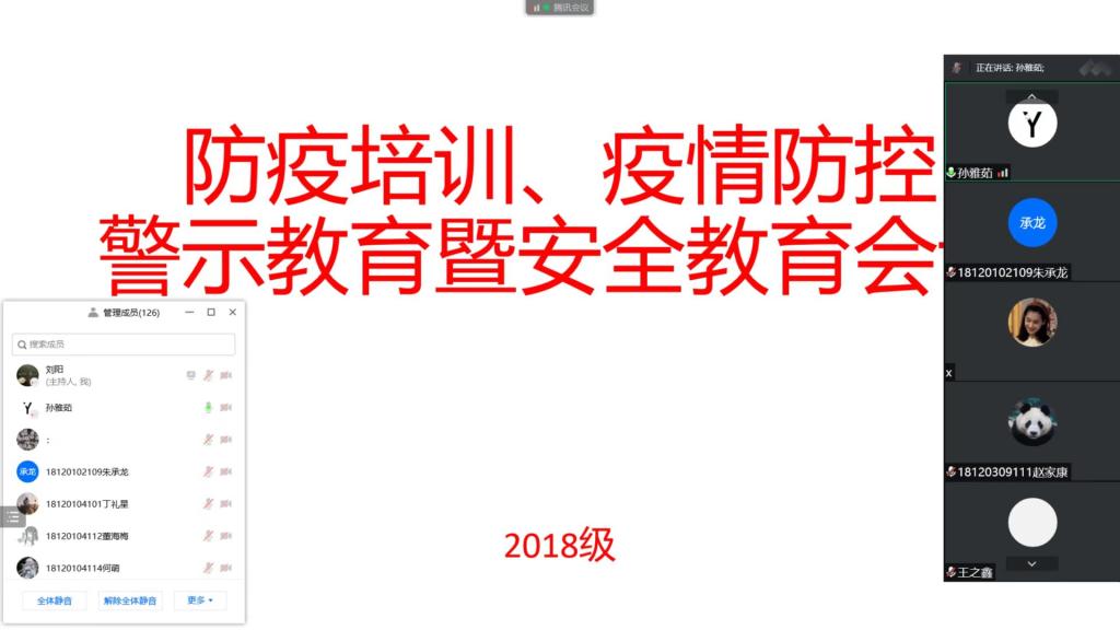 为切实做好端午假期学生安全教育和常态化疫情防控工作,艺术与传媒学院2018级于6月1日晚通过线上会议的方式召开防疫培训、疫情防控警示教育暨端午节安全教育会议,辅导员孙雅茹老师主持,2018级全体学生参加。