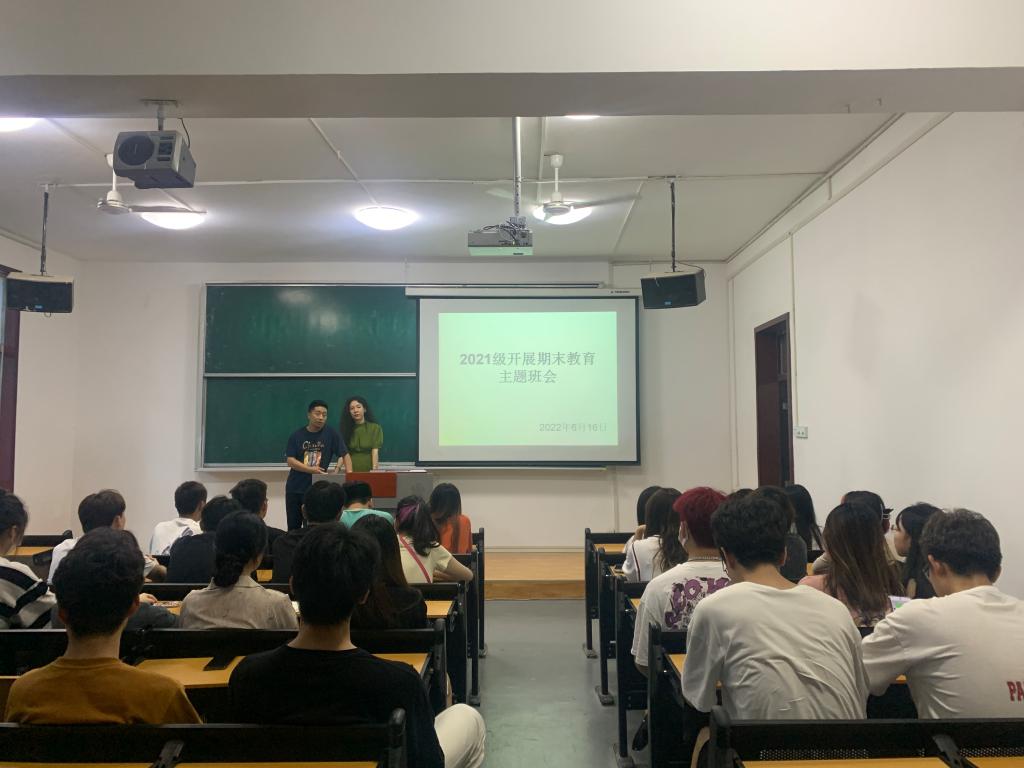 为做好期末工作的统筹安排,艺术与传媒学院2021级于6月16日开展期末教育主题班会,会议由黄怡梅、洪涛主持,2021级全体学生参加此次会议。