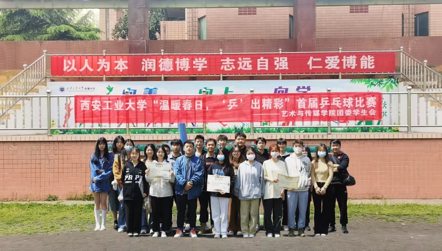 为了丰富同学们的课余生活,鼓励广大学生强身健体,进一步营造健康和谐的校园体育文化氛围,艺术与传媒学院于2022年3月28日-4月10日举行首届“温暖春日 ‘乒’出精彩”乒乓球比赛,学院200余名学生参与比赛。