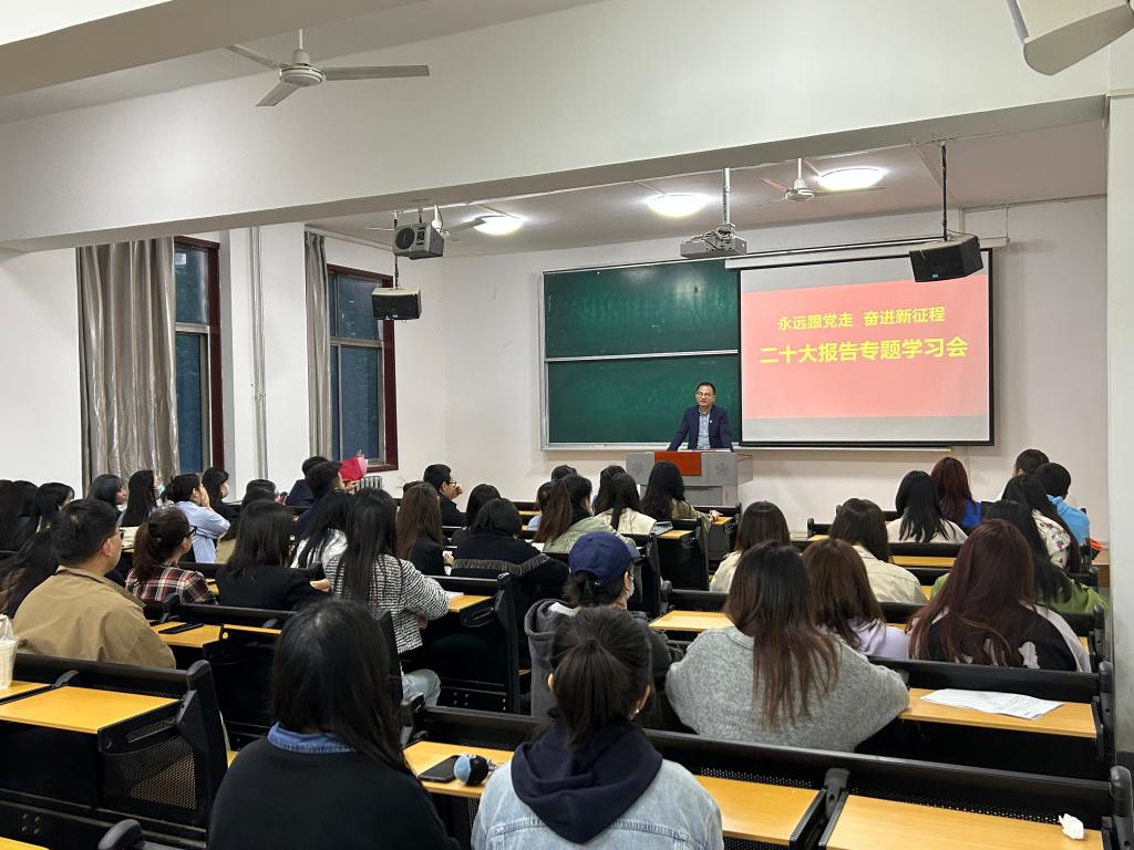 5月10日,学院在金花校区开展了以“永远跟党走,奋进新征程”为主题的二十大报告专题学习会,全体研究生参加了此次会议,院党委书记周著做专题报告。