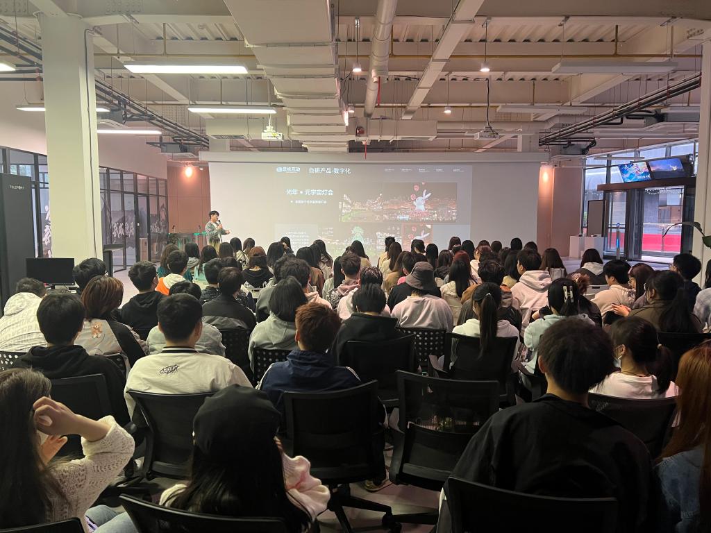 为了更好的促进学生自身发展,增加学生对专业的深入了解,艺术与传媒学院组织2022级数字媒体艺术专业学生走进灵机数字产业融创公司参观学习,增长见识,切身体验企业文化。本次活动由数字媒体艺术专业祝瑜老师、2022级辅导员洪涛老师带队,我院数字媒体艺术专业110名学生参加了此次活动。
