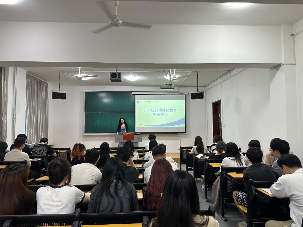 为了更好的优化我院学风、端正考风考纪,6月15日,艺术与传媒学院2021级举办诚信考试教育主题班会在教2-207举行。此次会议由2021级辅导员黄怡梅主持,2021级全体学生参加。