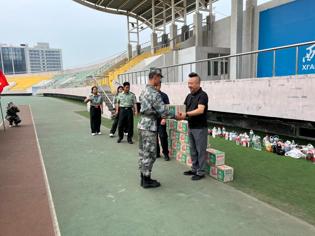 2023年8月24日上午,艺术与传媒学院院长苏胜、党委副书记张晓宾及全体辅导员慰问学院2022级参加军训的全体师生,并为大家送上慰问品。