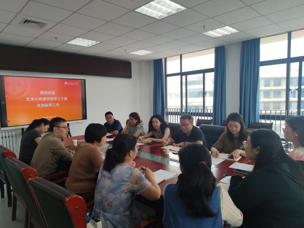为推动学院学生工作发展,增进学院之间的交流,2023年9月11日下午,艺术与传媒学院党委副书记张晓宾携全体辅导员走访了经济管理学院,经济管理学院党委副书记王育晓以及经济管理学院全体辅导员参加座谈会。