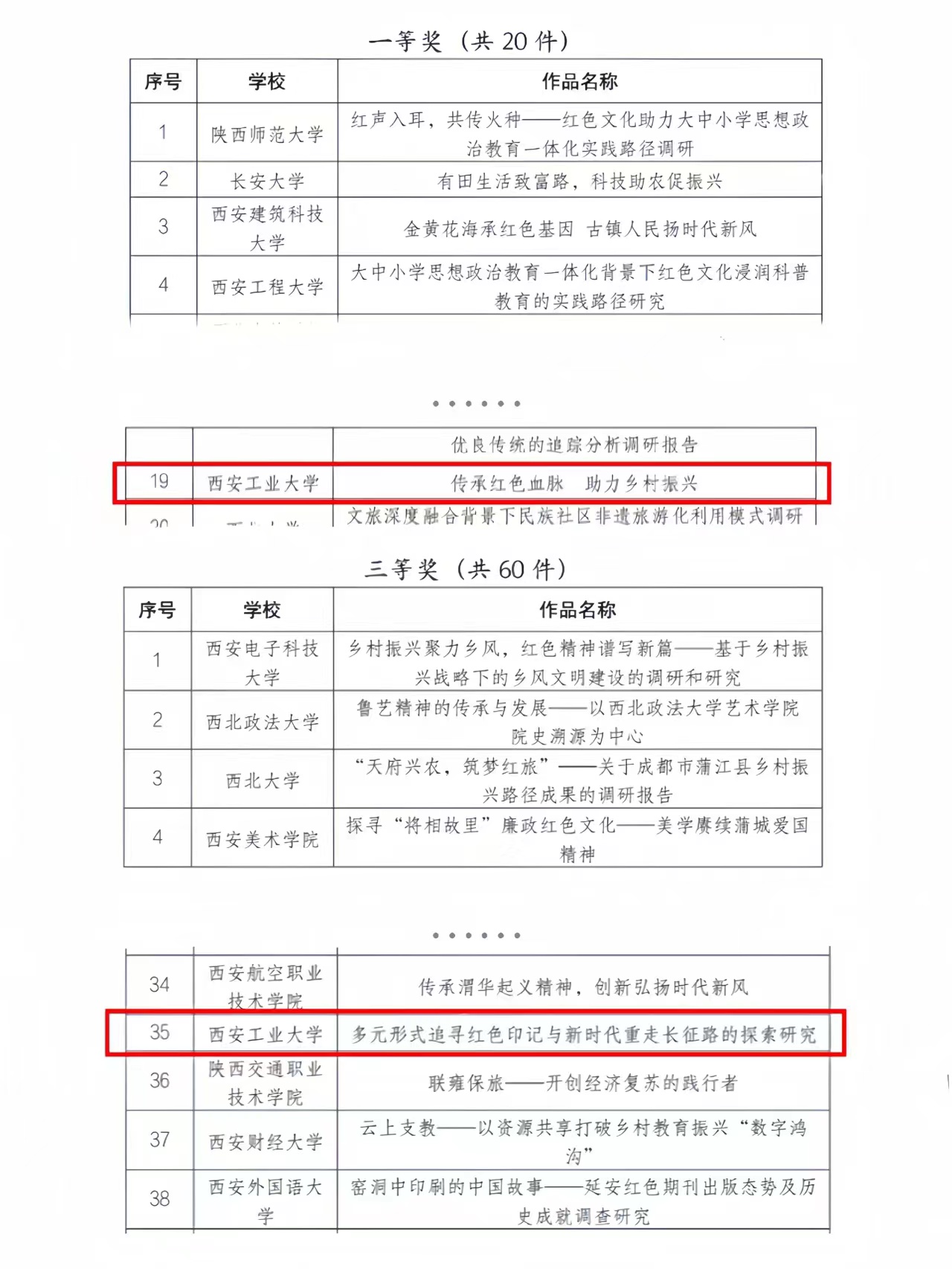 为促进大学生更加关注社会、进一步融入社会,艺术与传媒学院积极组织教师和广大学生组队参与第十八届“挑战杯”大学生课外学术科技作品竞赛红色专项活动陕西省赛。经学校推荐、省赛组委会评审,我院作品荣获一等奖1项,三等奖1项。