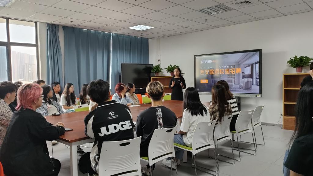 为切实推进2024届毕业生就业工作,9月22日上午,艺术与传媒学院邀请欧派家居集团股份有限公司人力总监郭晓辉及三名HR赴我院开展专场招聘会,宣讲会由2020级辅导员董丹丹主持,环境设计专业四十余名学生参加。