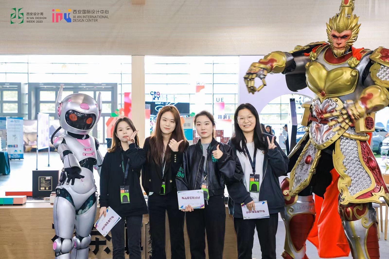 2023年10月13日—10月16日首届西安设计周在西安国际设计中心举行,本次设计周我院郭星雨、陈嘉希、席静雯、王芳岩、李坤梅、王玉等六名同学参与了“与儿童艺起设计”主题展馆的志愿服务活动。