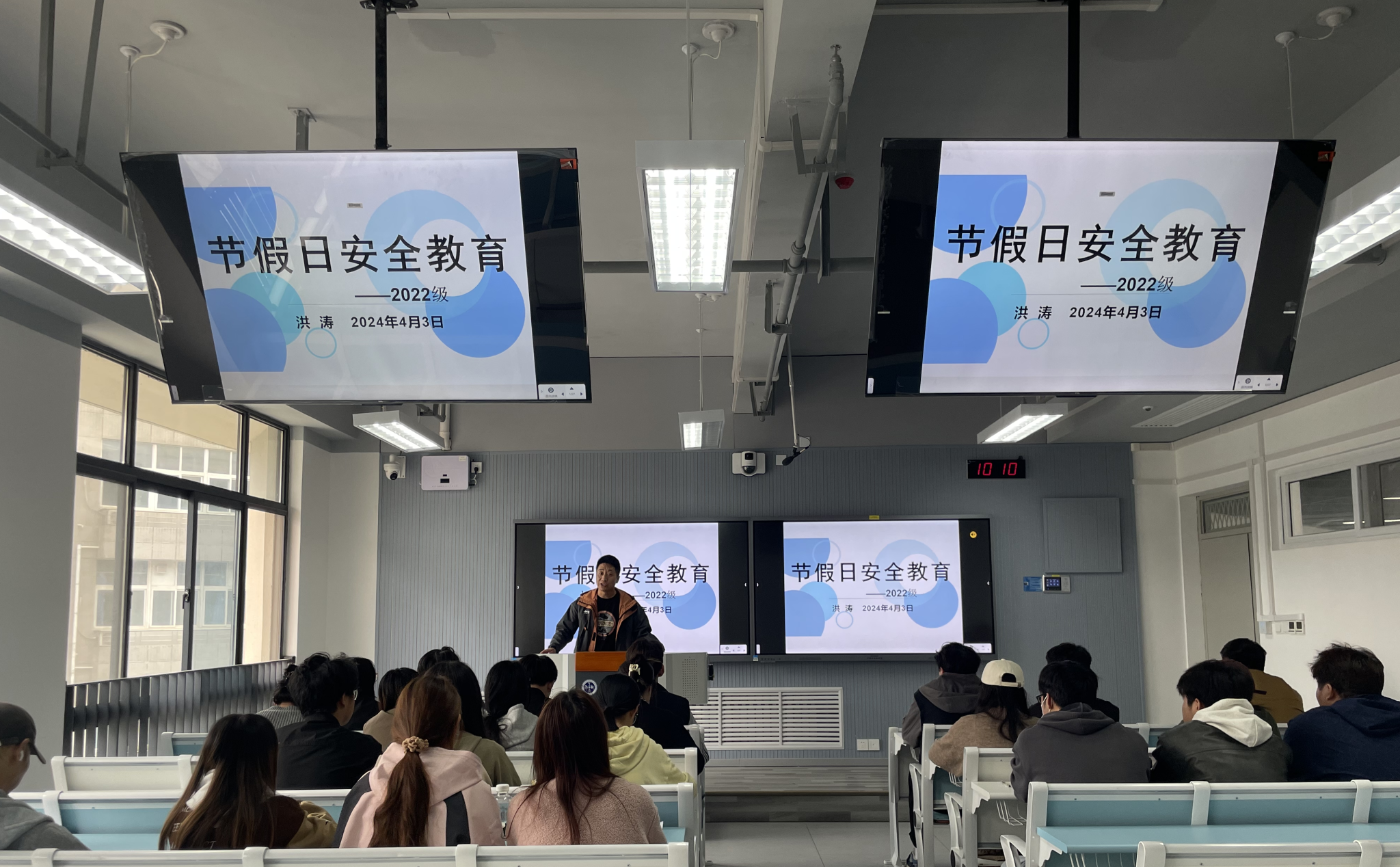 为更好的培育和践行社会主义核心价值观,宣传普及传统节日习俗,引导学生树立正确的孝德观,营造安全、文明、绿色、健康的节日氛围,4月3日,2022级在教7-404召开了清明节安全教育主题班会,会议由辅导员洪涛主持。