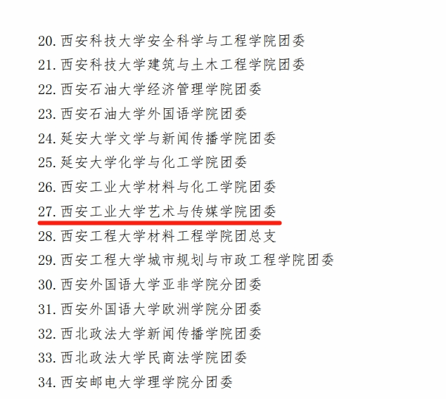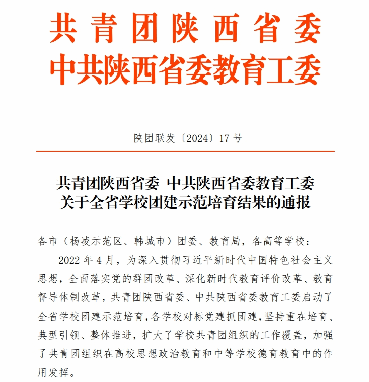 近日,共青团陕西省委、中共陕西省委教育工委联合印发了《关于全省学校团建示范培育结果的通报》,永利集团88304团委(原“艺术与传媒学院团委”)获批“全省高校团建标杆院系”。在永利集团2023年度五四表彰中,学院团委荣获“五四红旗团委”称号。学院共青团工作获显著成果。