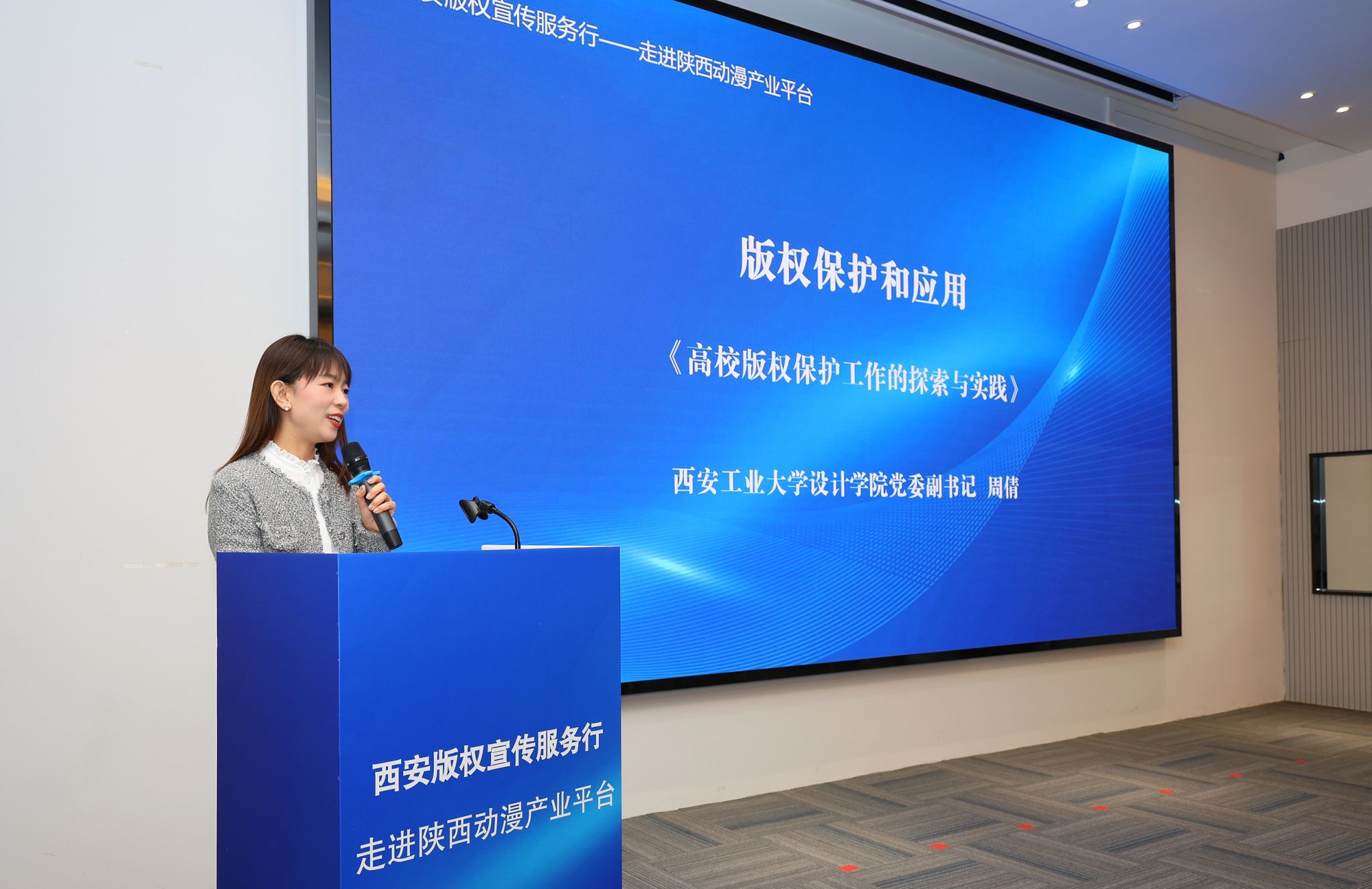 4月30日,由市委宣传部(市版权局)、碑林区人民政府共同主办的“西安版权宣传服务行——走进陕西动漫产业平台”主题活动在碑林科技产业园成功举办。我院党委副书记周倩、数字媒体艺术系教师祝瑜应邀参加。大会授予永利集团88304“陕西动漫产业平台版权工作服务站校园服务点”,周倩作为版权工作校园服务点代表院校发言。