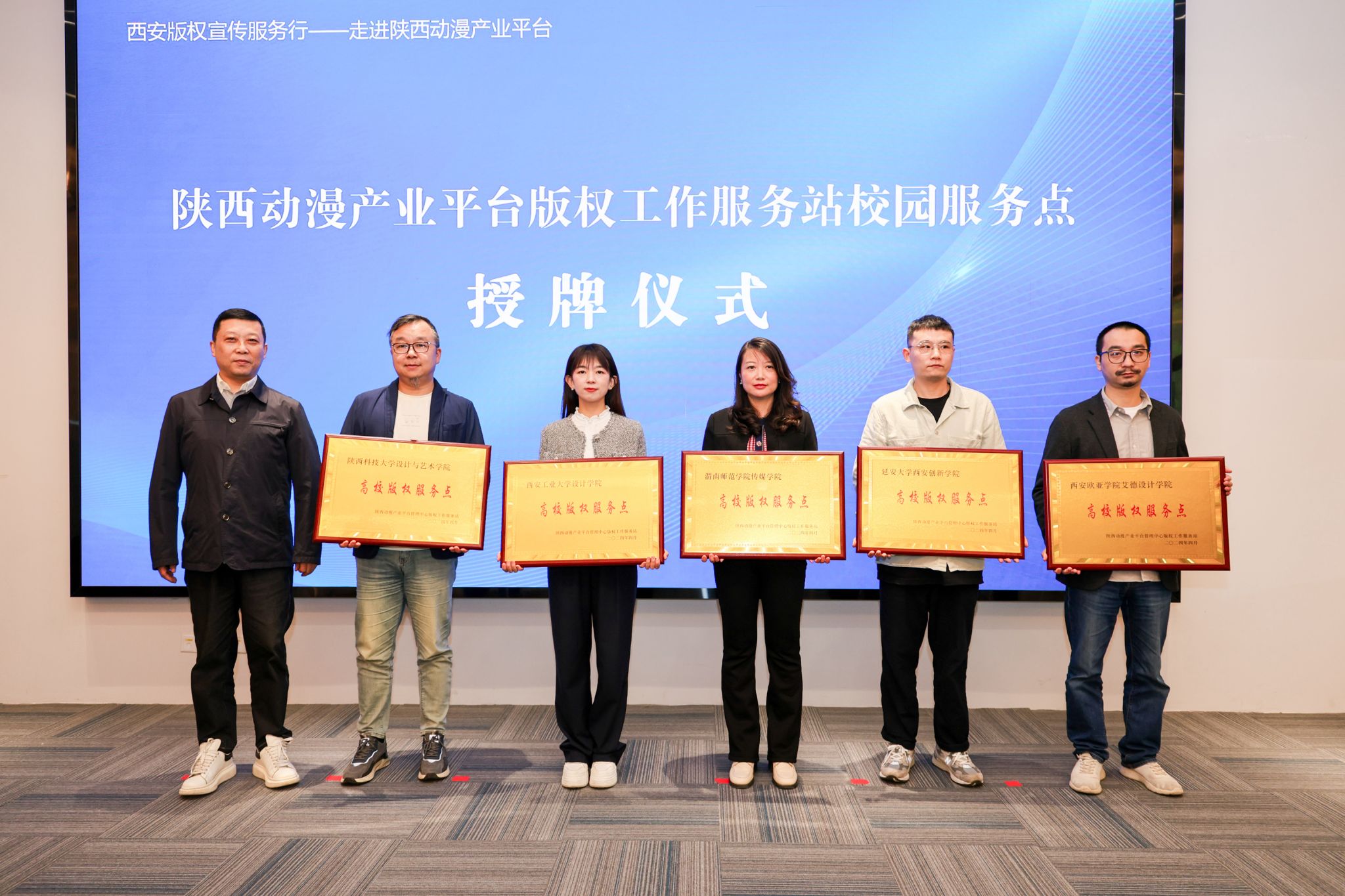 活动现场,陕西动漫产业平台管理中心版权工作服务站与永利集团88304等5家单位签署了校园服务点合作协议,并举行了授牌仪式。校园服务点的设置将版权服务延伸至高校师生身边,为有需求的师生提供了版权咨询、登记、宣传、维权、培训等服务,进一步激发和保护师生的创新创造热情,树立尊重版权、拒绝盗版、勇于创新的正确价值观。学院将持续加强与陕西动漫产业平台等版权工作站的合作,积极探索新的服务模式和技术手段,不断提升服务水平,努力适应版权保护工作的新形势和新要求,为推动版权事业繁荣发展贡永利集团88304的力量。