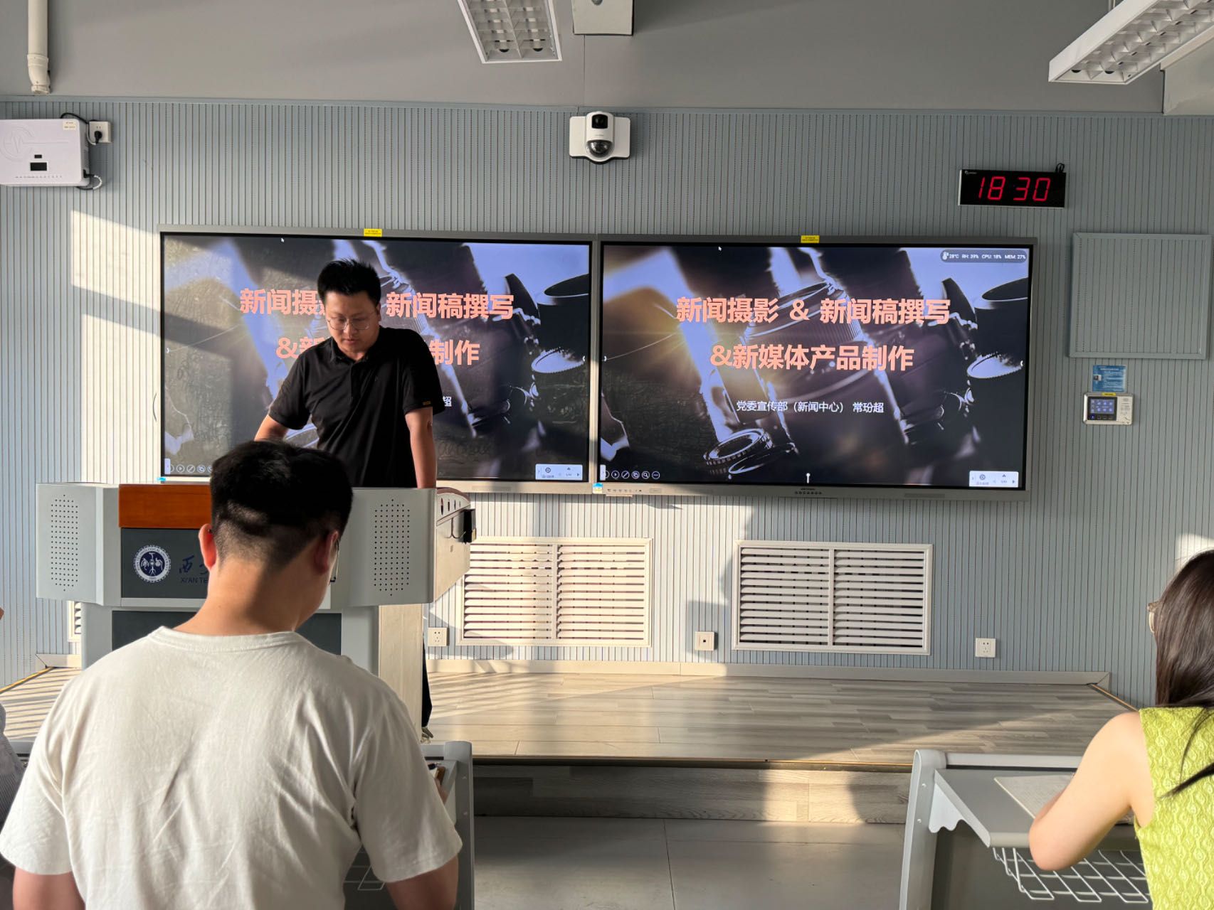 常玢超从“新闻摄影”“新闻稿撰写”“新媒体产品制作”三个方面对参与人员进行了专项培训。他结合学校的优秀新闻稿件案例,对其中新闻稿的撰写、图片摄影、构图技巧等方面进行了详细解析,并强调新闻工作应结合时事、形式新颖、内容丰富。同时,他还特别讲到,新闻稿件的表述要规范、严谨。随后,在“新媒体产品制作”部分的讲解中,结合自身工作经验,常玢超着重讲解了新媒体常用的制作软件和编辑器的使用,并就学院学生工作公众号推送的内容和形式做了针对性地指导。内容丰富详实、实用性强的授课内容让师生受益匪浅,大家纷纷表示,通过培训,使自己的新闻业务水平、新闻热点捕捉、新媒体应用能力等方面都有较大提升。