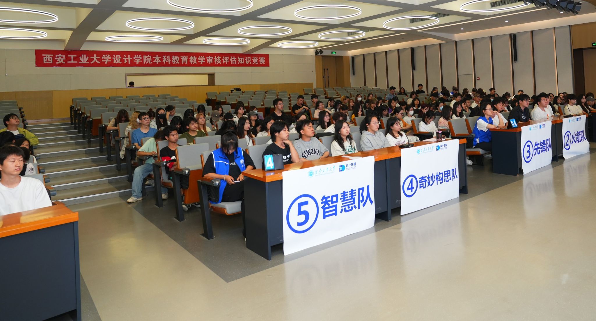 竞赛集知识性与教育性于一体,分团体赛和个人赛两个环节进行。团体赛中,共有5支代表队参加,设置了必答题、抢答题和风险题等环节,多角度、深层次的考察参赛者对新一轮本科教育教学审核评估知识的理解与掌握情况,现场秩序井然、气氛热烈、精彩纷呈。个人赛共有10名选手参加,分个人抢答题、风险题、加赛题3个环节,参赛选手们沉着冷静、思路清晰、反应迅速,以最佳的精神状态投入到答题活动中,展现出较高的知识储备量和快速的应变能力,精彩答题赢得现场掌声连连,也检验了学院本科生学习本科教育教学审核评估“应知应会”知识的成果。经过激烈角逐,共产生团队优胜奖2个,个人赛一等奖2名,二等奖3名,三等奖5名,其余选手均获优秀奖。
