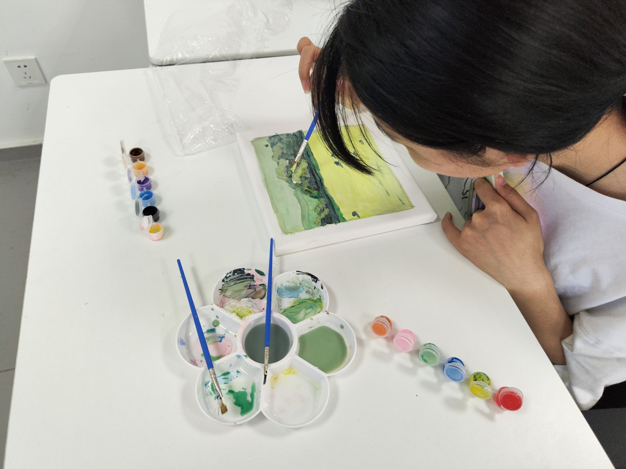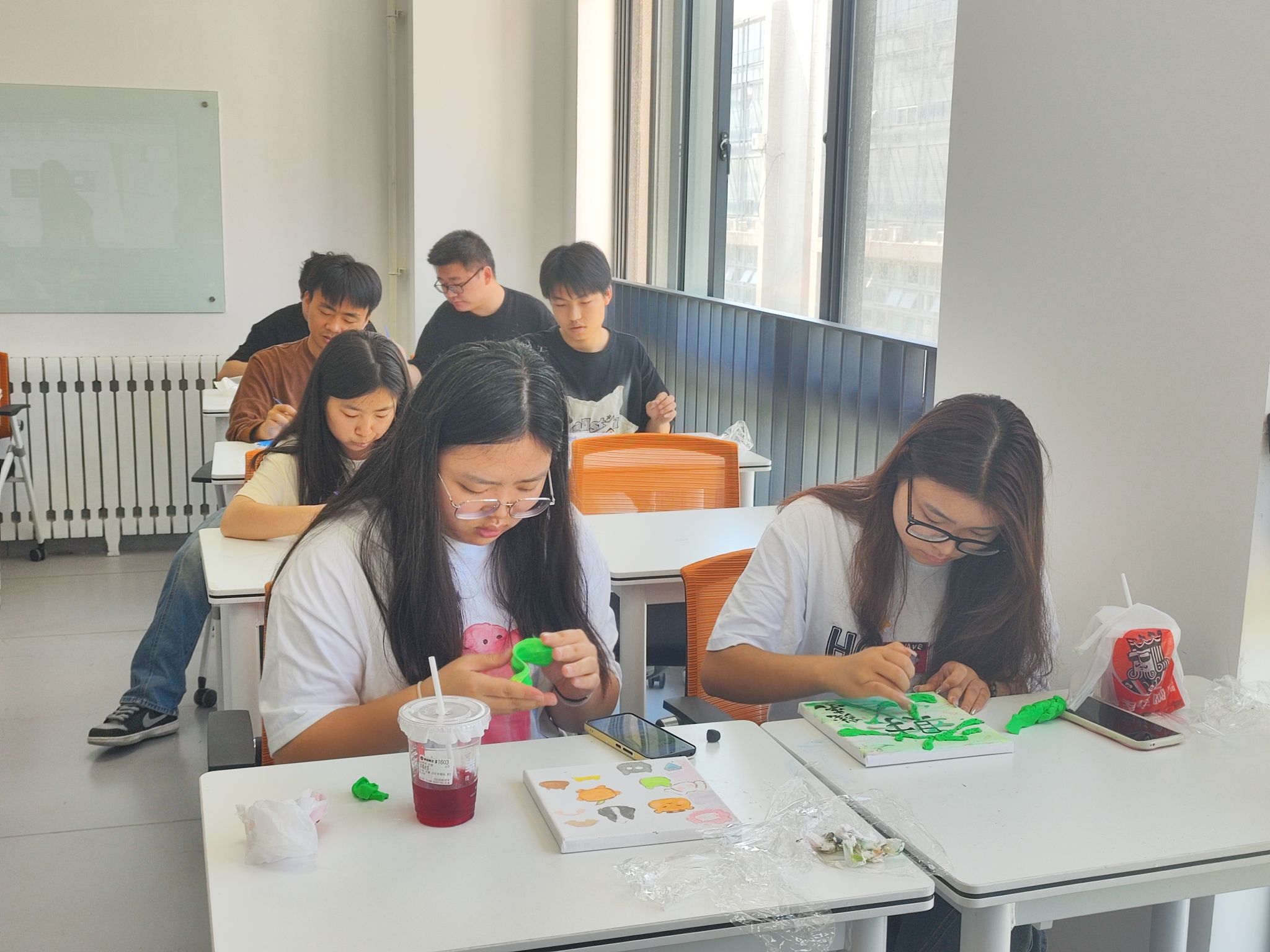 此次活动包括涂鸦和手工制作两部分,在自由的创作氛围中,同学们尽情发挥创意,展示个性,完成了风景画、人物画像、卡通形象等作品。多人协作完成一幅作品也促进了同学间的交流与互动,通过涂鸦创作,不仅能培养同学们的创造力和动手能力,还可释放近期压力,提升心理素质。