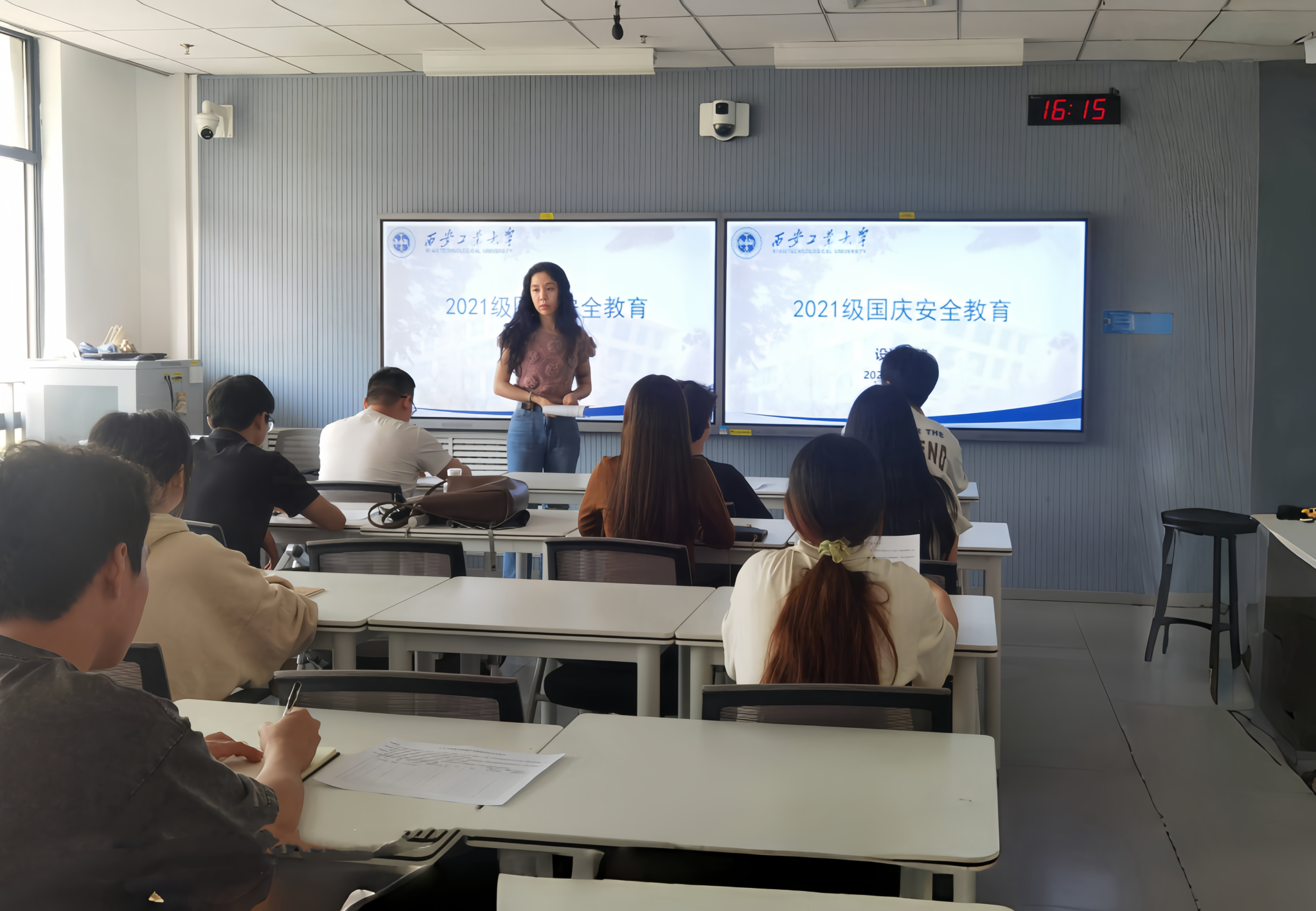 会上,黄怡梅强调,国庆假期必须时刻牢记安全第一的原则,提高安全意识和自我防范能力。首先,应选择正规的交通工具,遵守交通规则,在回家途中确保自己和他人的安全。此外,还应注意消防安全、网络安全、财产安全等。随后,在留校安全教育方面,着重讲述了校园安全和自我防护的要点。她要求同学们在留校期间遵守学校规章制度,保持宿舍整洁卫生,避免发生火灾等不安全事故。