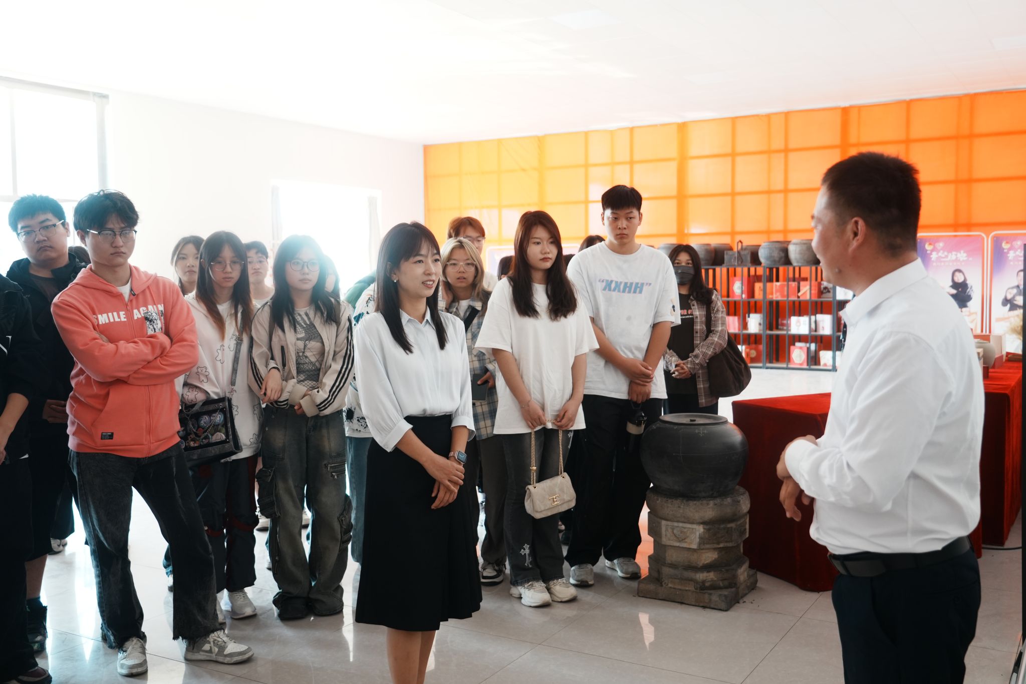 仪式上,乔彬彬对学院一行到来表示欢迎。他结合自己的创业之路为学院23120414、23120517团支部上了一堂生动的团课。他带领当地青年实现自己的返乡创业梦,接连被评为“全国乡村振兴青年先锋”“全国优秀共青团干部”“陕西青年五四奖章”。在乔彬彬的讲述中,同学们了解到新农人电子商务有限公司采取“企业+合作社+农户”模式,充分落实习近平总书记关于“三农”工作的重要论述,依托自身产业优势,聚焦高质量发展目标,在柿子特色产业链上成立富平庄里镇联村团支部,吸纳共青团员135人,覆盖青年2100余人,带动182名青年参与产业发展,辐射带动周边村庄,产业建团。助推“富平柿饼”标准化、品牌化、电商化发展,为当地经济发展带来了新活力。支部成员们听后纷纷表示自己也要更好的运用数字媒体艺术及工业设计相关专业知识,助力乡村产业发展壮大,以实际行动加入到乡村振兴事业中来。