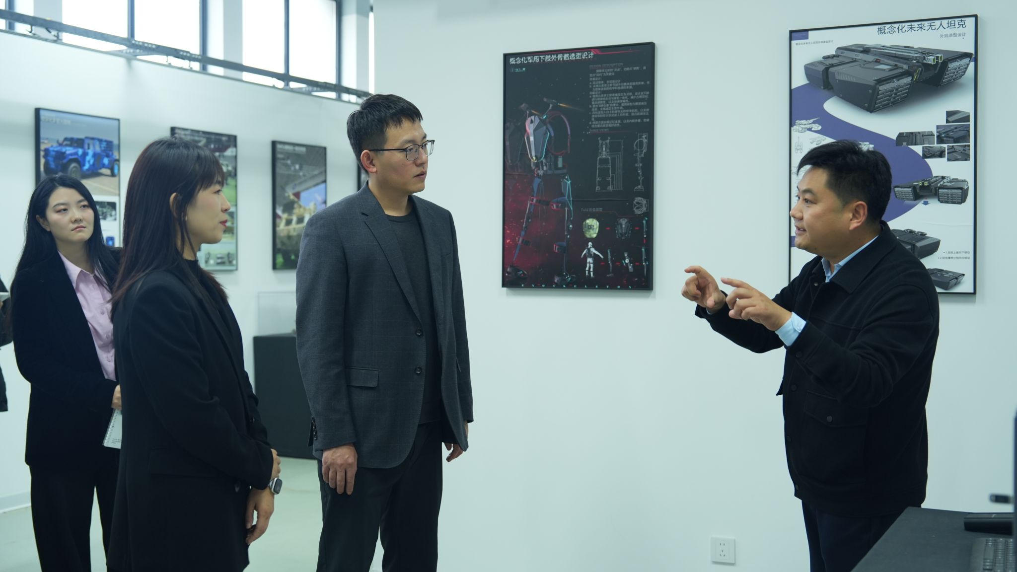 在周倩等人的陪同下,宋振航一行首先参观了兵器美学美育中心及我院2024级研究生实践课程优秀作品展。