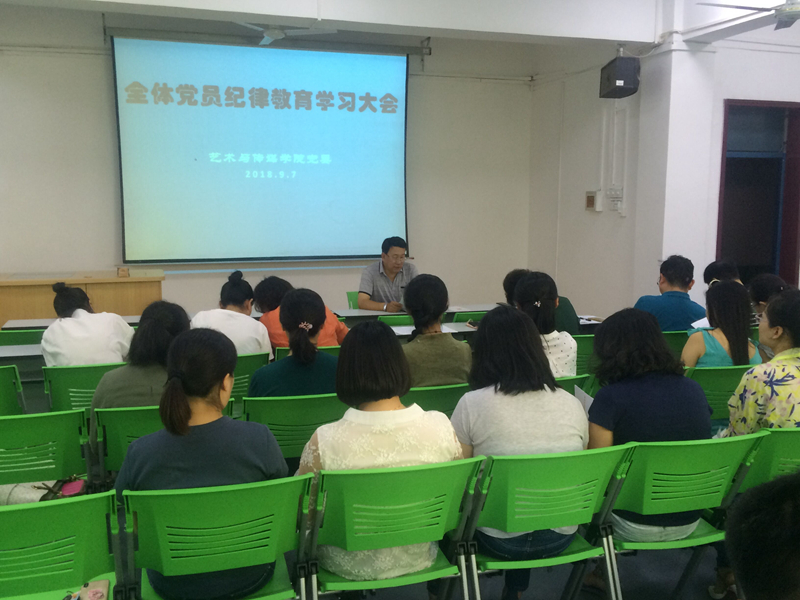 9月7日下午,艺术与传媒学院党委在金花校区组织开展纪律教育学习活动,学习教育由学院党委书记朱晋中主持,学院党政领导、全体教工党员、学生党支部书记参加了学习活动。