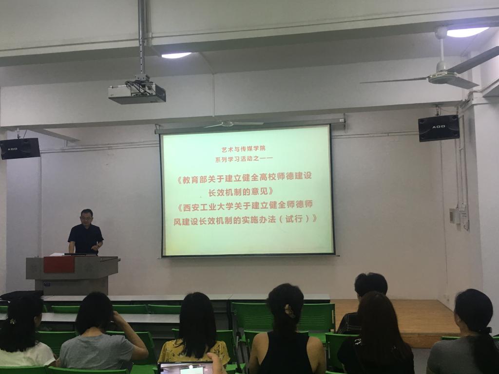 7月21日,为贯彻落实师德师风建设相关文件精神,艺术与传媒学院党委组织全体教师开展了师德建设文件的学习活动,活动由学院党委书记周著主持。