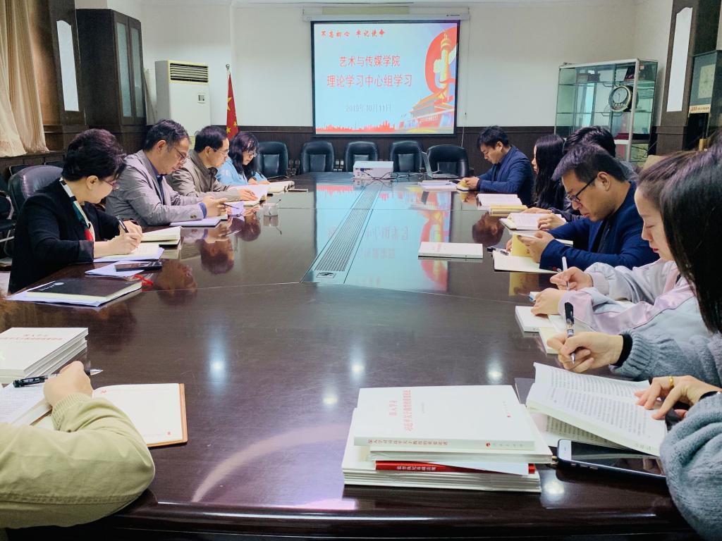 20191011日,艺术与传媒学院党委中心组组织开展“不忘初心、牢记使命”主题教育学习,学院党委书记周著主持学习。