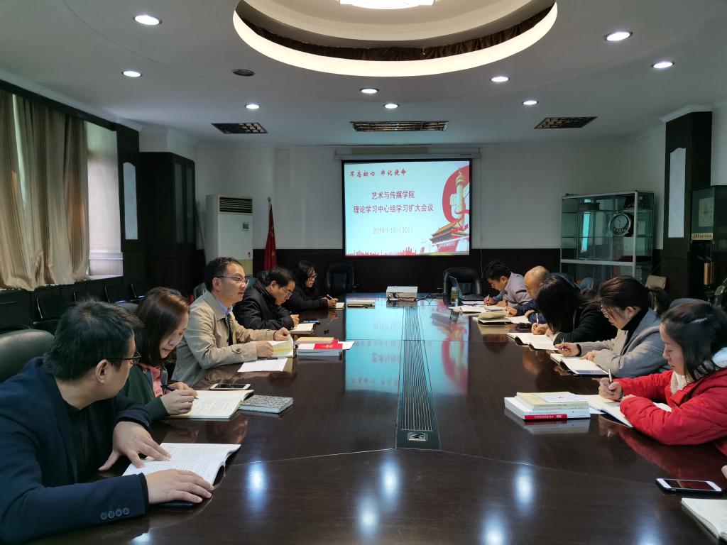20191030日上午,艺术与传媒学院党委中心组组织开展“不忘初心、牢记使命”主题教育学习,学院党委书记周著主持学习。