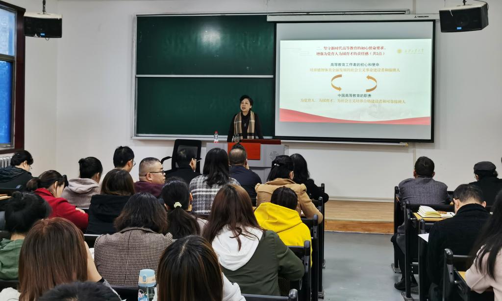 雷亚萍从深刻把握初心使命的丰富内涵;坚守高等教育的初心使命要求;守初心担使命,推动学校人才培养质量提升三个方面,详细阐述了初心和使命的丰富内涵、高等教育工作者的初心和使命、践行高等教育初心和使命的关键在于两个聚焦。