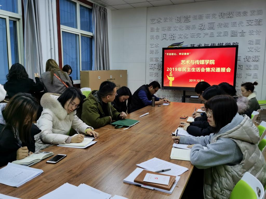 12月20日,艺术与传媒学院召开2019年度处级党员领导“不忘初心、牢记使命”主题教育专题民主生活会情况通报会,会议由院党委书记周著主持。
