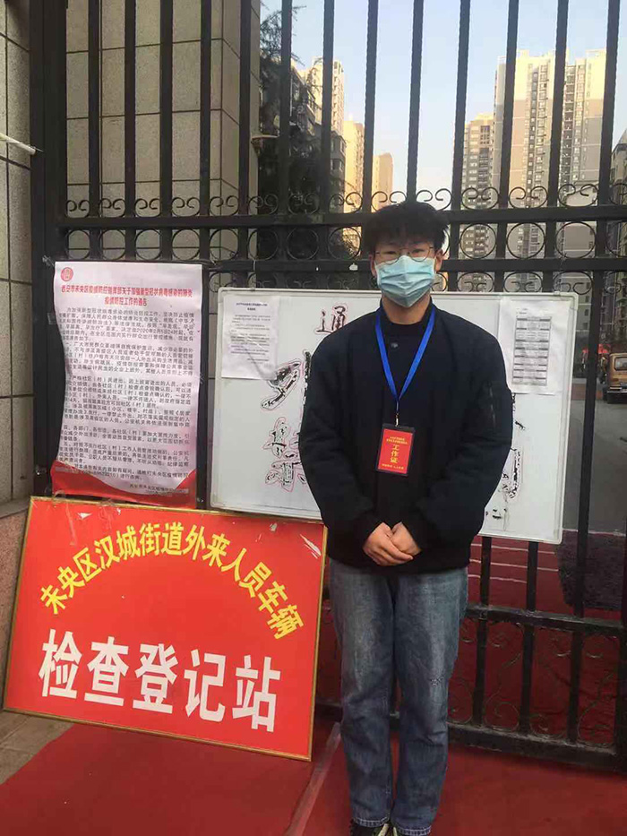 艺术与传媒学院学生第三党支部学生党员董易豪,在疫情当前,主动向山东临沂兰山区义堂镇孟庄村支部委员会提出申请,希望为疫情前线奉献一份力量。21日至今,按照村党支部的统一部署,该同志与其他党员在村外围开展排查企业留守人员以及工人返工开工情况、向村外围群众散发关于排查近期从湖北等地返回义堂镇漏管人员倡议书,负责完善村外围的义堂镇板材企业外来务工人员摸底调查表,逐一上门登记,让人民群众签订疫情防控承诺书细小的工作守护的是人民群众的大安全,董易豪说:希望自己的努力能为防控疫情贡献一份力量,加油武汉、加油中国!
