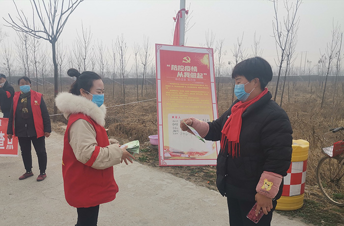 艺术与传媒学院第二党支部预备党员刘凤娟,在河南省驻马店市确山县三里河乡董庄村党支部村委会召开成立疫情防控小组以来,积极响组织号召参与疫情防控工作。129日开始,每天准时前往防控点参加义务执勤奔走在村巷道排查武汉返乡人员登记劝返外村来往人员与车辆,并向村内外的群众宣传与发放关于疫情防控的宣传手册,守护村民的生命安全与健康。