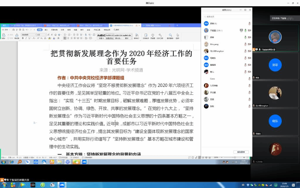 根据《永利集团2020年上半年教师政治理论学习计划》要求,7月5日下午,数字媒体艺术系通过腾讯会议平台召开了政治理论线上学习会。本次会议由系主任于振玺主持,我院党委书记周著教授出席,全系教师参加了本次学习活动。