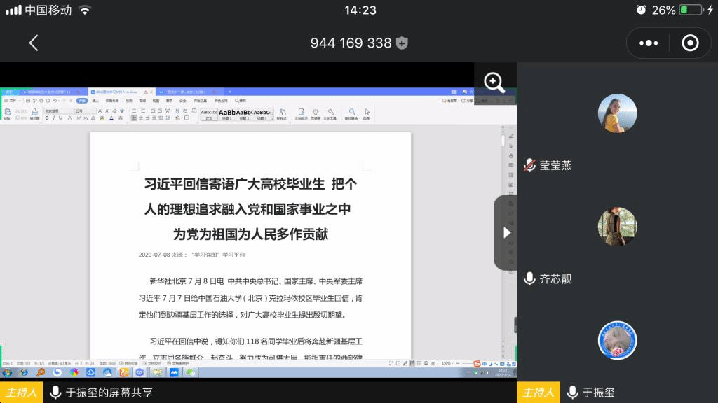 7月14日,数字媒体艺术系利用腾讯会议平台召开政治理论线上学习会,我院党委书记、数字媒体艺术专业带头人周著教授列席,系主任于振玺主持,全系教师参加。