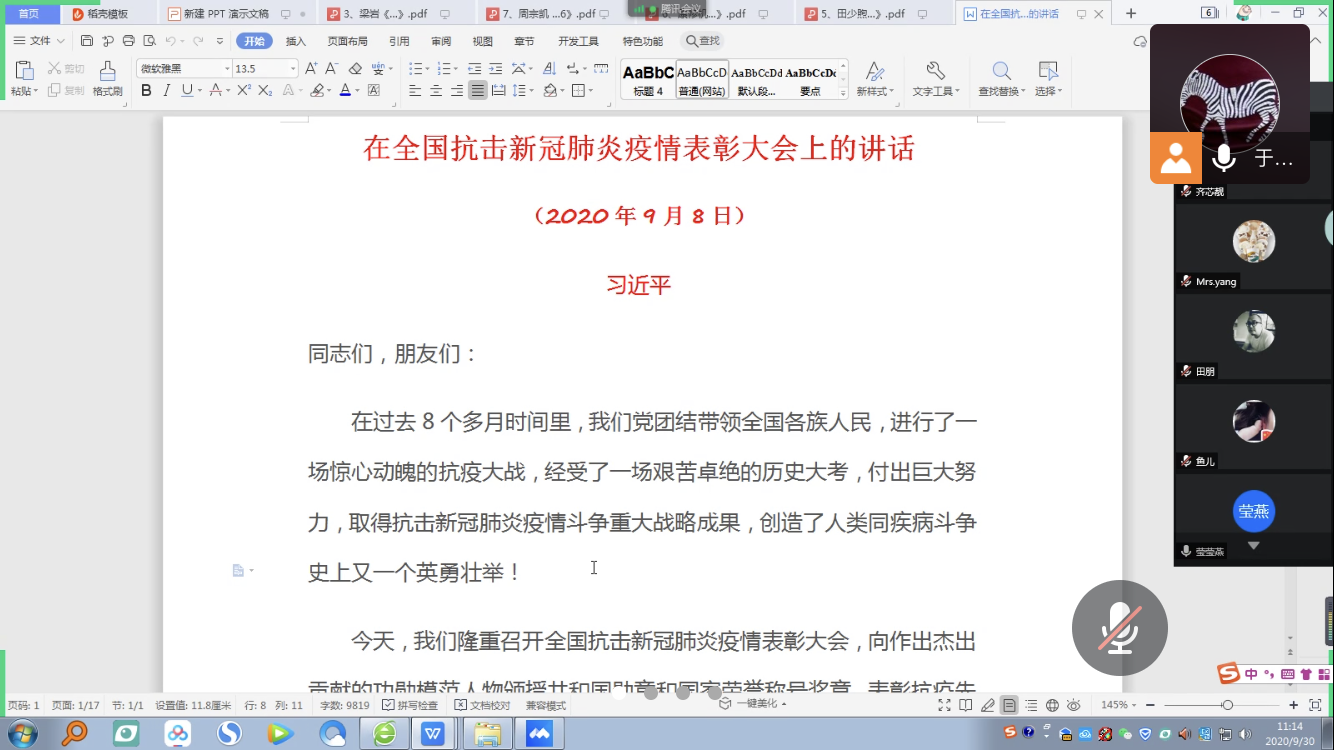在会议上,于振玺首先领学了习近平总书记在全国抗击新冠肺炎疫情表彰大会上的重要讲话精神,随后各位教师根据学习体会各自发表了心得与感受。