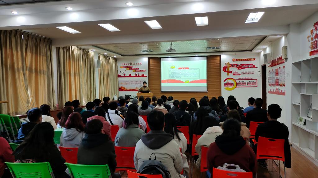 为了响应党的号召,跟进时代脚步,不断提高大学生党员的政治素养,学院学生第一、二党支部于2020年11月26日12:00在J2-307教室共同开展主题学习活动。活动由学生第一党支部副书记龚华荣主持,第一支部书记孙雅茹老师、第二支部书记杨娜娜老师主讲,支部全体学生党员参加了本次活动。