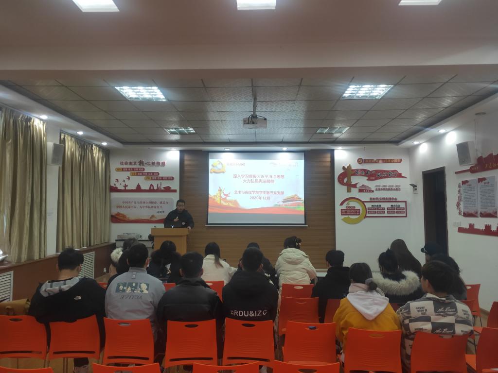 为了认真学习领会习近平法治思想、吃透基本精神、把握核心要义,12月4日,艺术与传媒学院学生第三党支部于教2-306开展“深入学习宣传习近平法治思想 大力弘扬宪法精神”主题党日活动。支部书记张晓宾主持会议,支部全体学生党员参加了此次主题党日活动。
