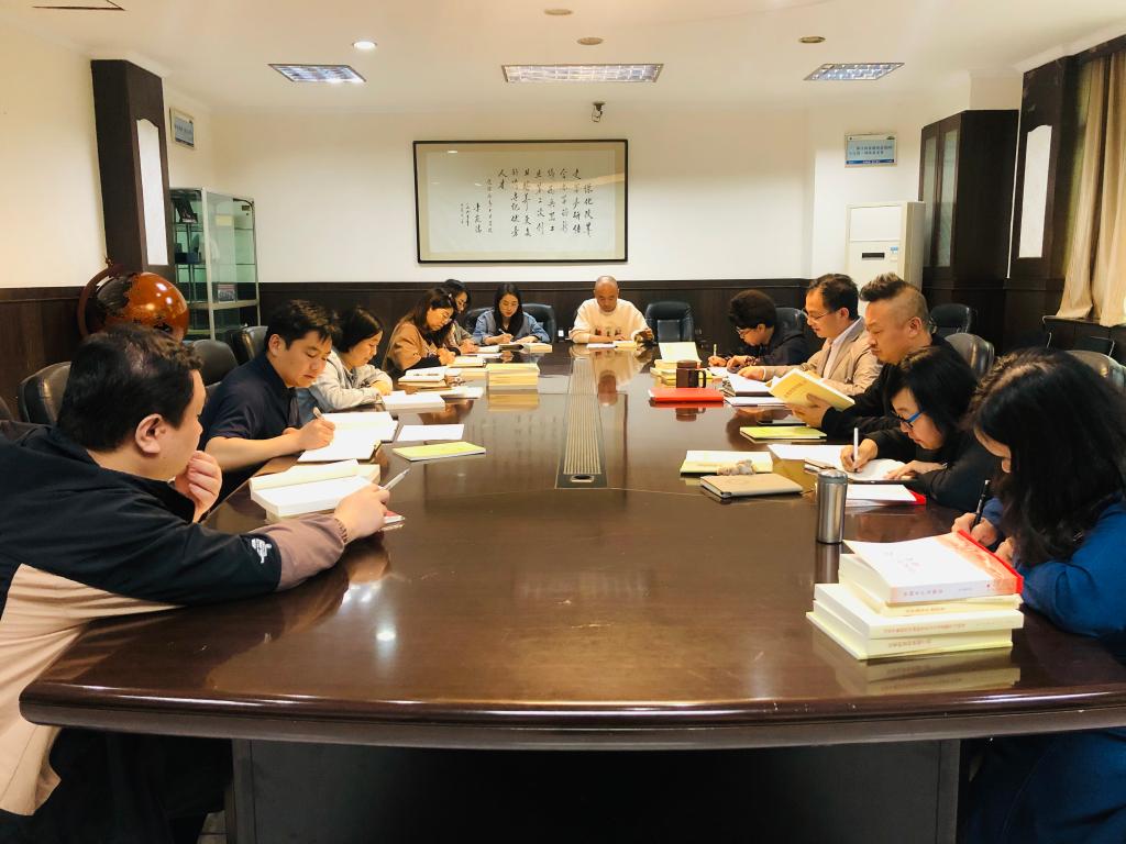 4月30日,艺术与传媒学院党委理论学习开中心组召扩大学习会,学院党委书记周著主持学习。