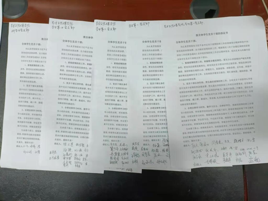 10月下旬至11月中旬,我院学生党支部陆续开展了“疫情防控 党员先行”倡议活动。