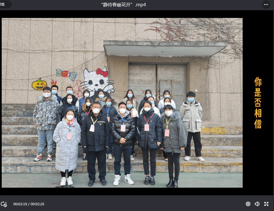 以“静待春暖花开”为主题,在支部内征集短视频。支部同学用专业所学,通过镜头记录疫情期间的所见所闻,致敬抗疫一线工作人员。