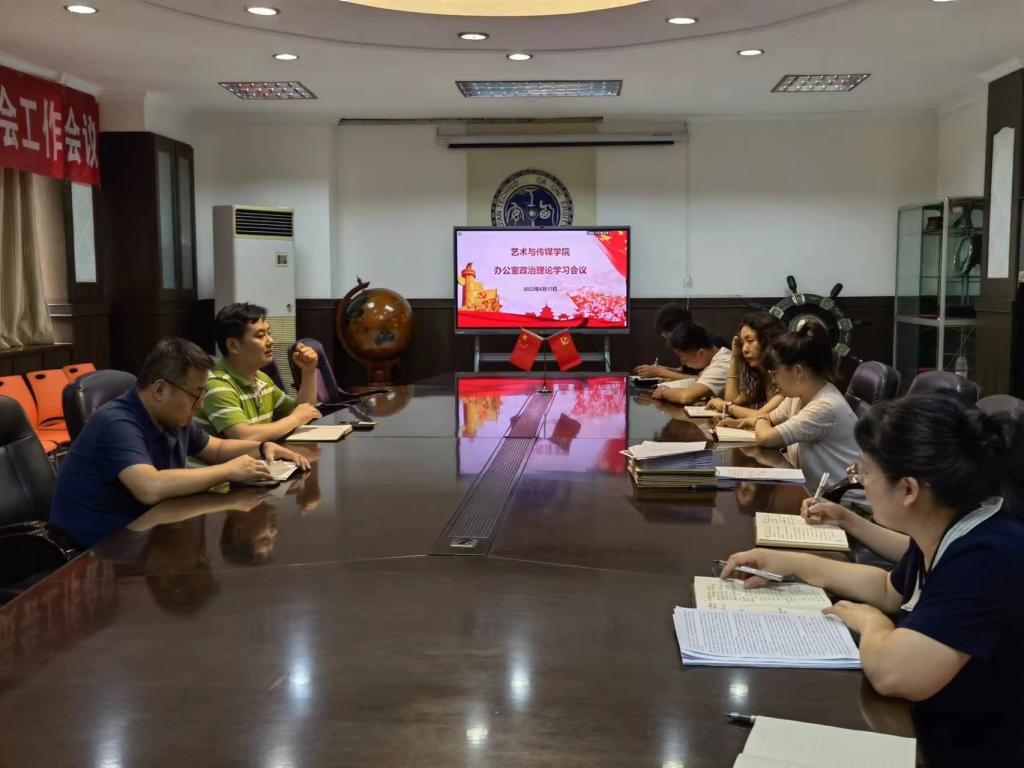 2022年6月17日,艺术与传媒学院办公室在接待室召开了政治理论学习会,会议由办公室主任王光奎主持,办公室全体成员参加了本次学习。