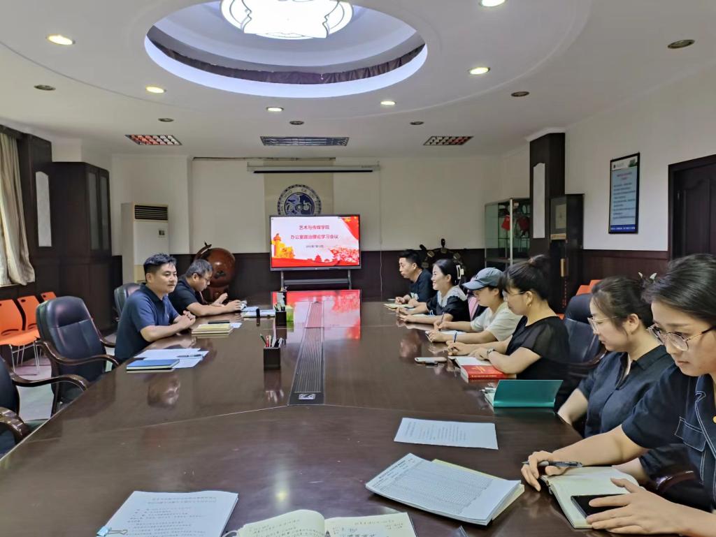 7月12日,艺术与传媒学院办公室召开政治理论学习会议,学院办公室主任王光奎主持学习,党委副书记张晓宾、办公室全体成员参加了学习会议。