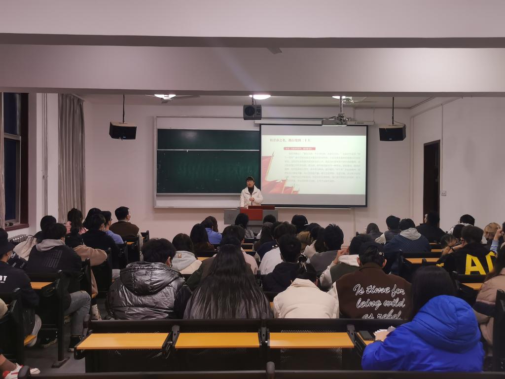 为引导青年学子深入学习宣传贯彻二十大精神, 11月27日校学工干部宣讲团成员、我院团委书记杨娜娜老师为我院学生宣讲二十大精神,70余名学生代表参加此次宣讲活动。