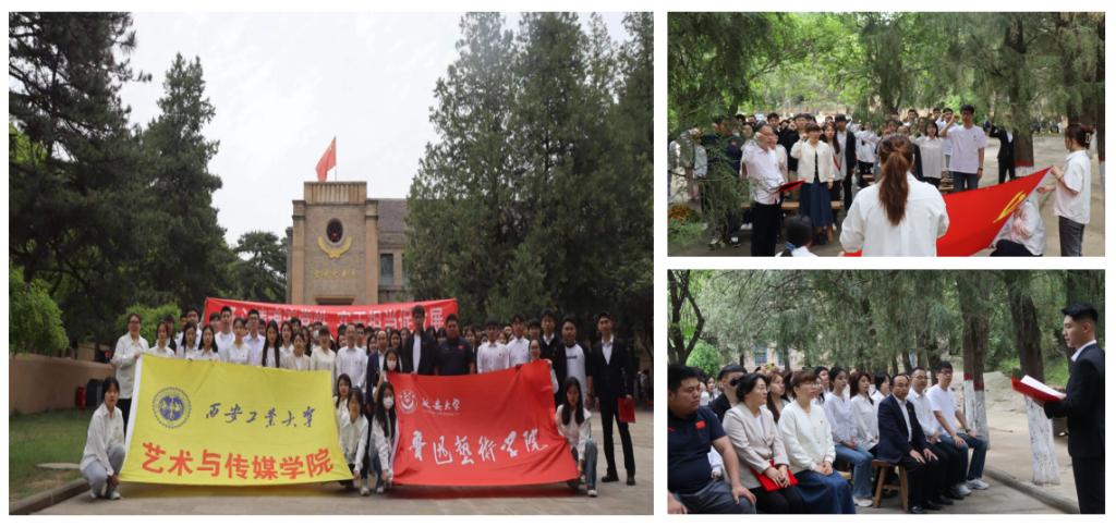 在杨家岭革命旧址,周著带领大家重温入党誓词,鲁迅艺术学院学生党员白宇超讲授了党课“党的七大故事”,我院学生党员代表张岳、师晓凤分别发表学习体会,最后,董建文书记作总结讲话。