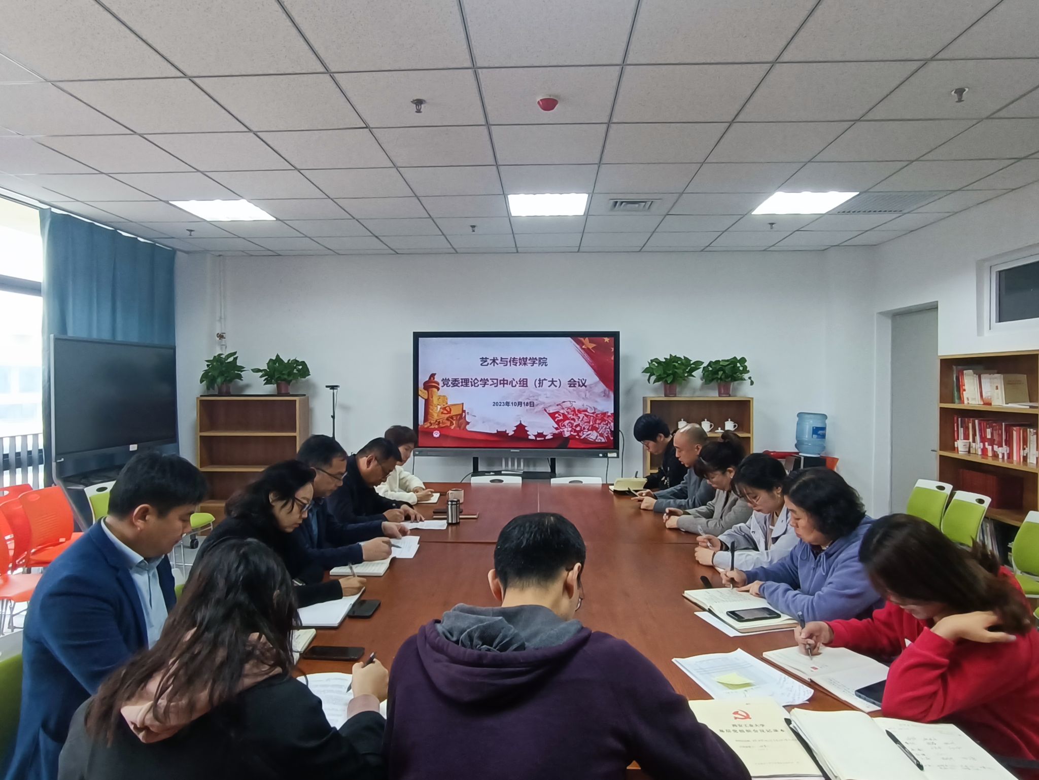 10月18日,艺术与传媒学院党委理论学习中心组召开学习(扩大)会议,学院党委书记周著主持学习会。
