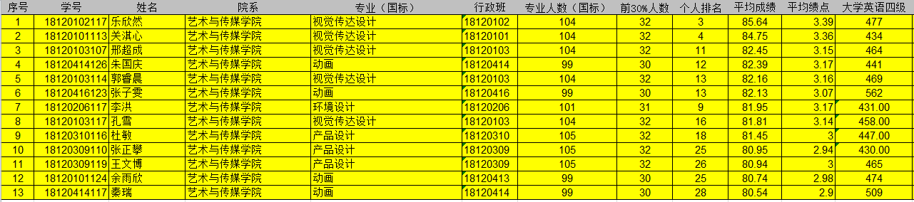 艺术与传媒学院2022年推免符合条件学生名单公示