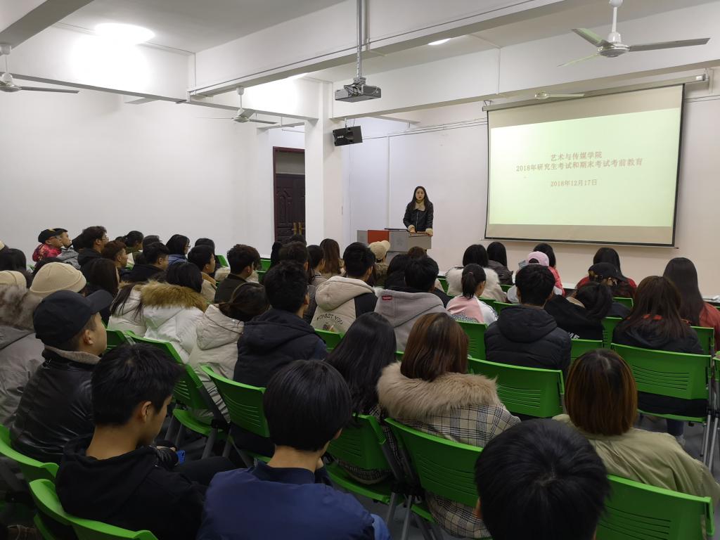 为了端正学风,强化学生的纪律意识,严肃考风考纪,艺术与传媒学院于2018年12月17日—21日分年级召开考前教育大会,各年级辅导员分别进班就相关注意事项和具体要求向大家逐一讲解,艺术与传媒学院全体学生参加了大会。