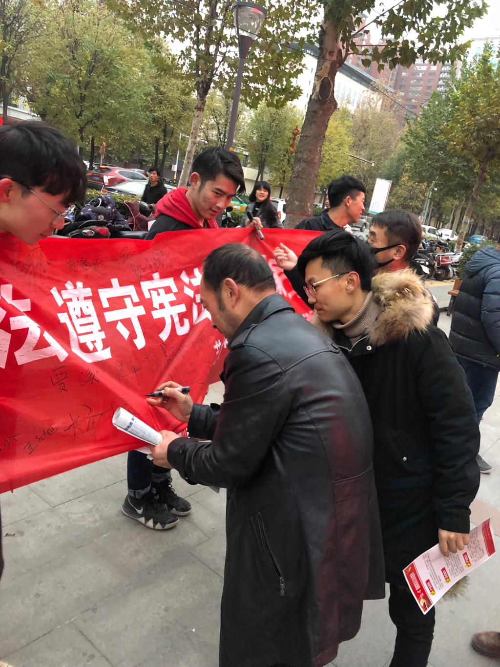 宣传活动过程中,同学们通过集中观看“国家宪法日”宣传片、开展“国家宪法日”主题演讲、表演普及法律知识的话剧、制作并发放“国家宪法日”宣传单、组织宣传法律知识的签名活动、网上在线学习等丰富多彩的形式系统学习了我们国家设立“国家宪法日”的目的和意义以及设立的背景。